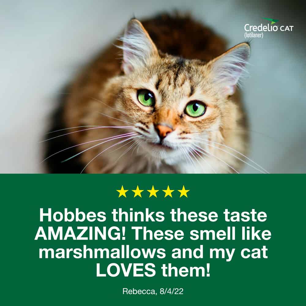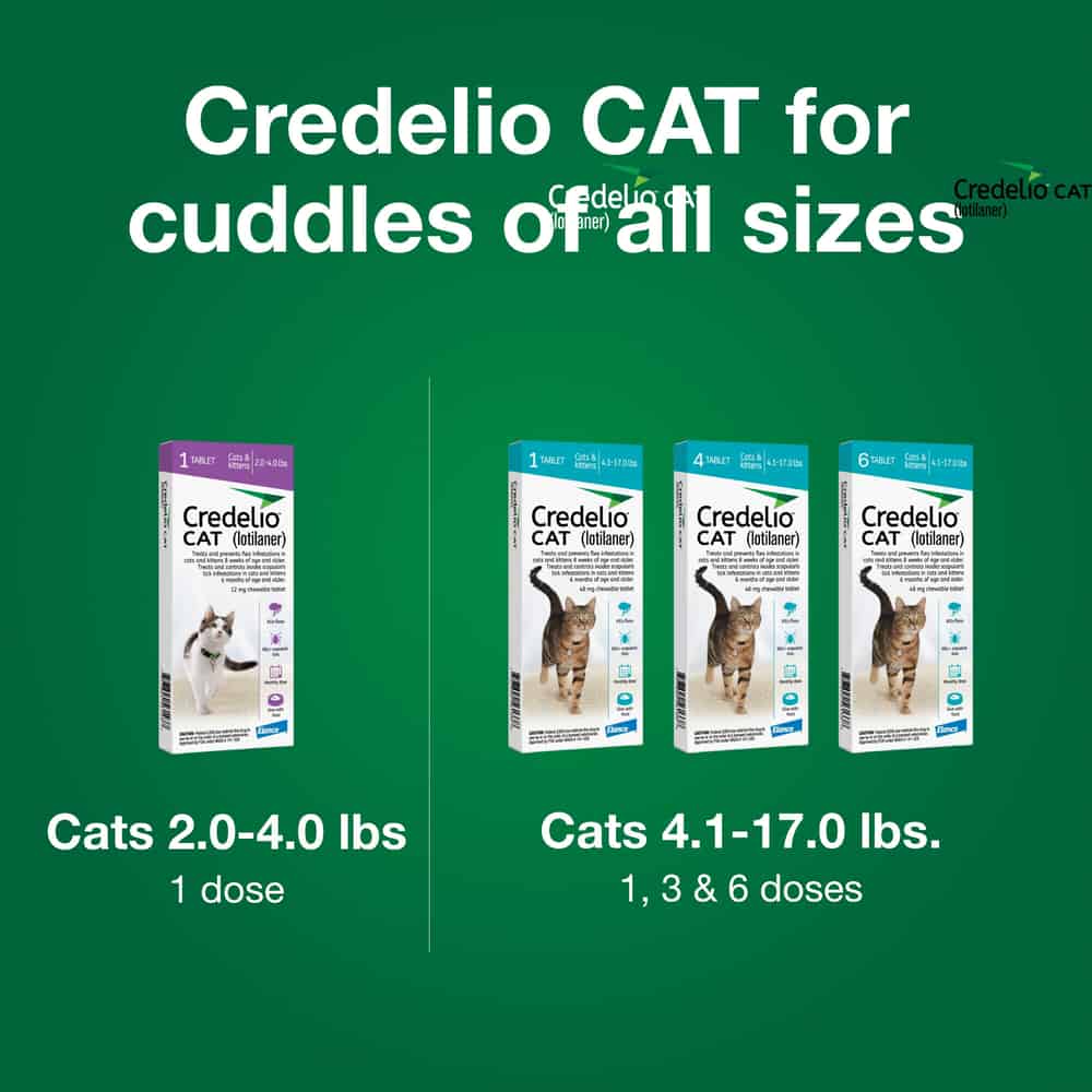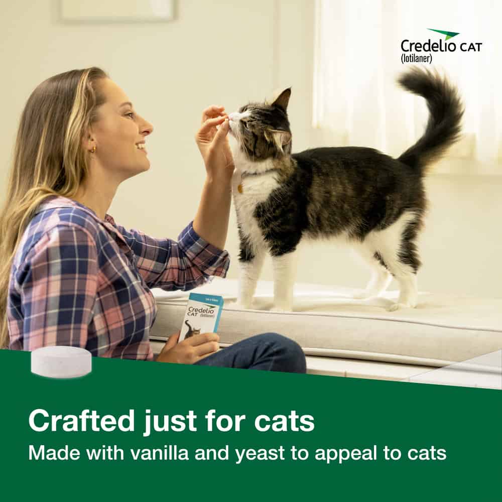 - Easy to give; Credelio CAT was successfully given by over 99% of cat owners (Chappell K, Paarlberg T, Seewald W, et al. A randomized, controlled field study to assess the efficacy and safety of lotilaner flavored chewable tablets (Credelio® CAT) in eliminating fleas in client-owned cats in the USA. Parasite Vector. 2021;14:127.)