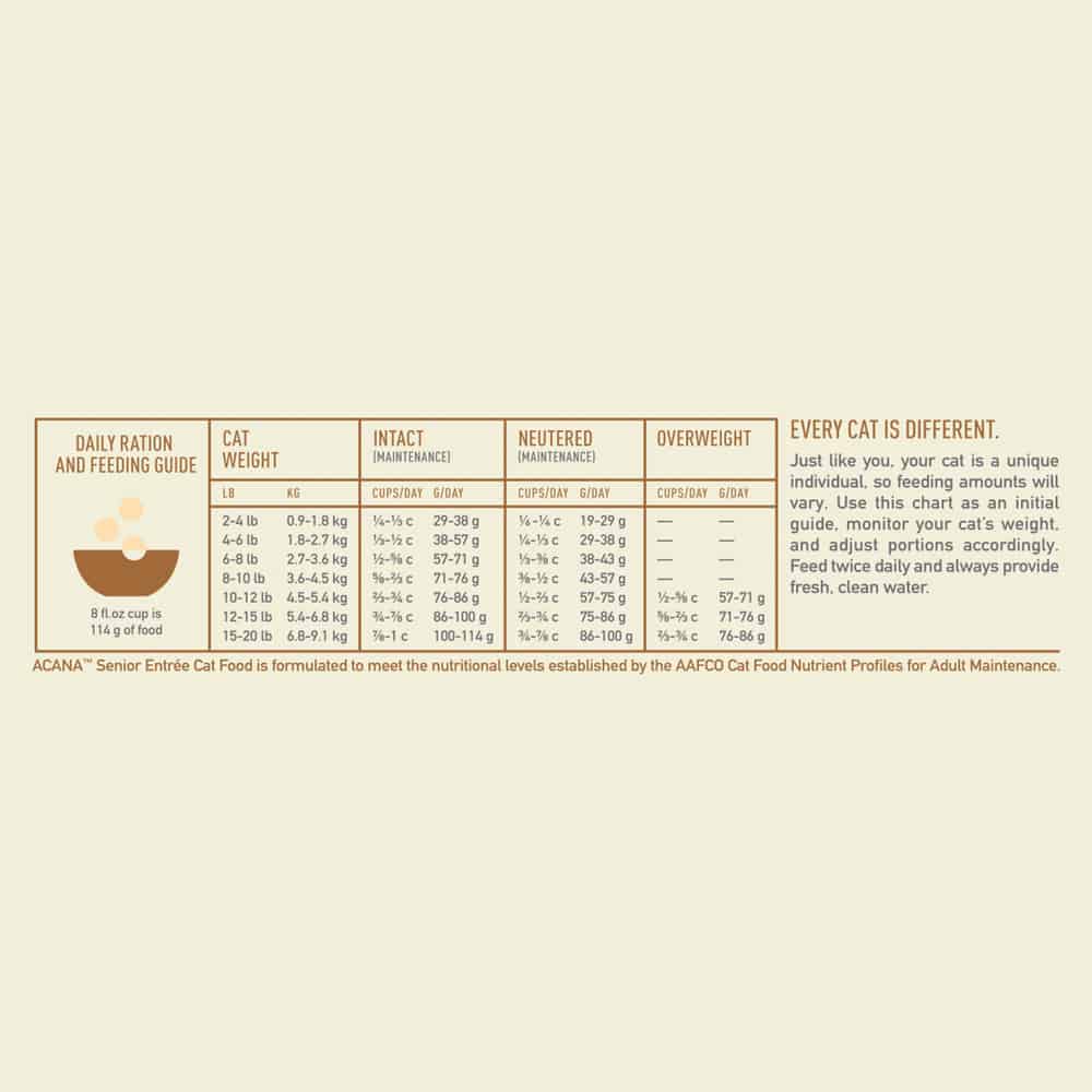 ACANA Senior Entrée Free-Run Chicken & Turkey Dry Cat Food Dosage: