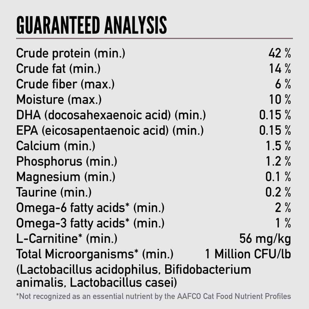 | Nutrient Information | *Not recognized as an essential nutrient by the AAFCO Cat Food Nutrient Profiles. |