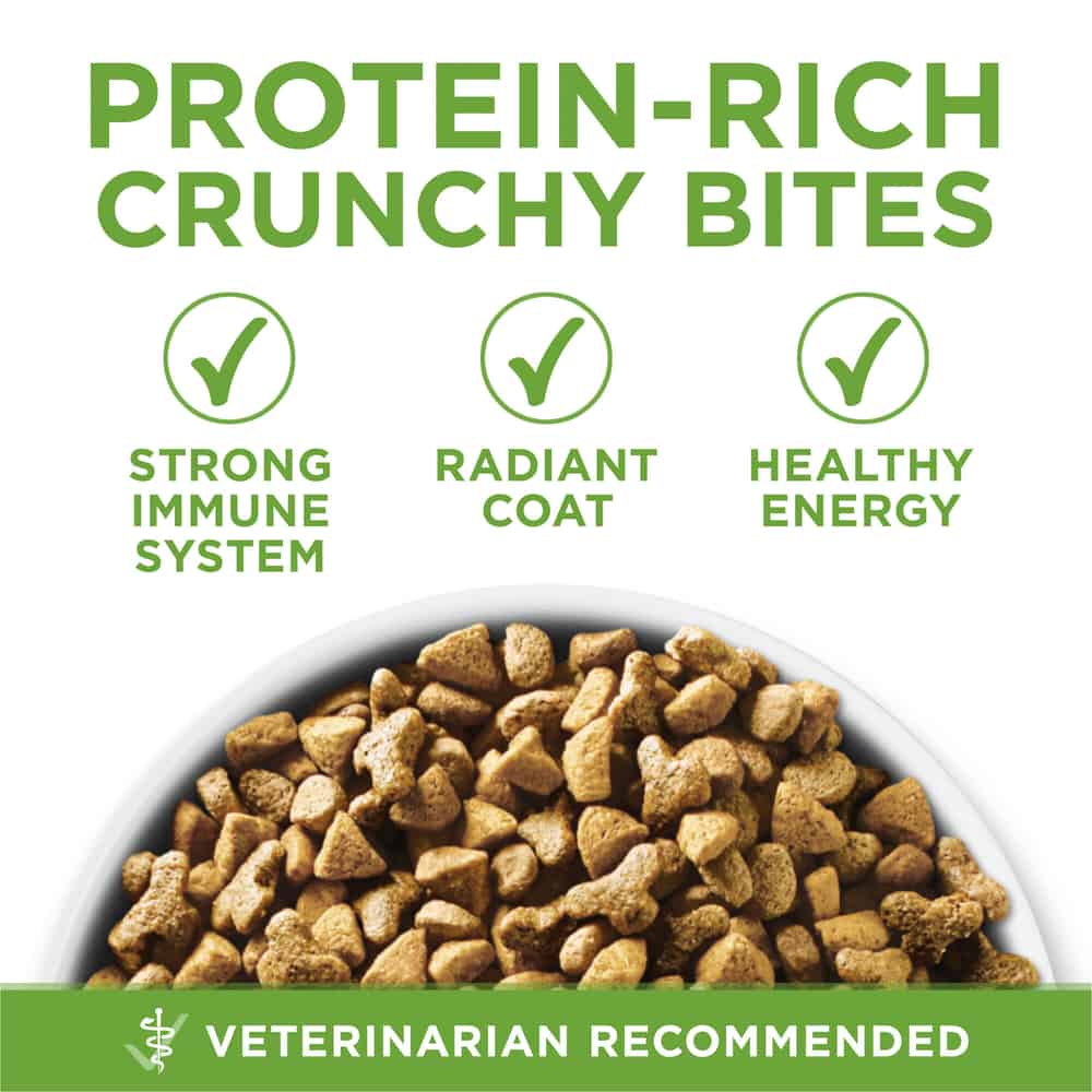 - Deliciously crunchy bites deliver great taste in a natural cat food formula with added vitamins, minerals and nutrients and no artificial flavors or preservatives