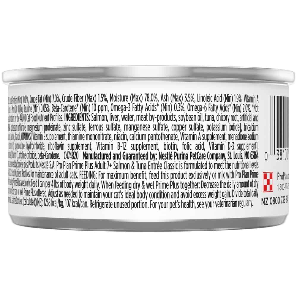 Purina Pro Plan Senior Adult 7+ Prime Plus Salmon & Tuna Entree Grain-Free Classic Wet Cat Food Directions:
