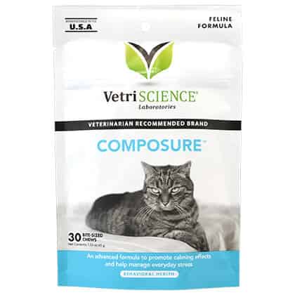For a calm and confident cat, choose VetriScience Calm & Confident Calming Chews. This fast-acting formula is scientifically shown to reduce everyday stress and unwanted behaviors within 30 minutes, providing support for up to 4 hours during travel, vet visits, and more. By utilizing a multi-modal approach that gently promotes relaxation without sedation, Composure helps your cat navigate stressful situations with ease.