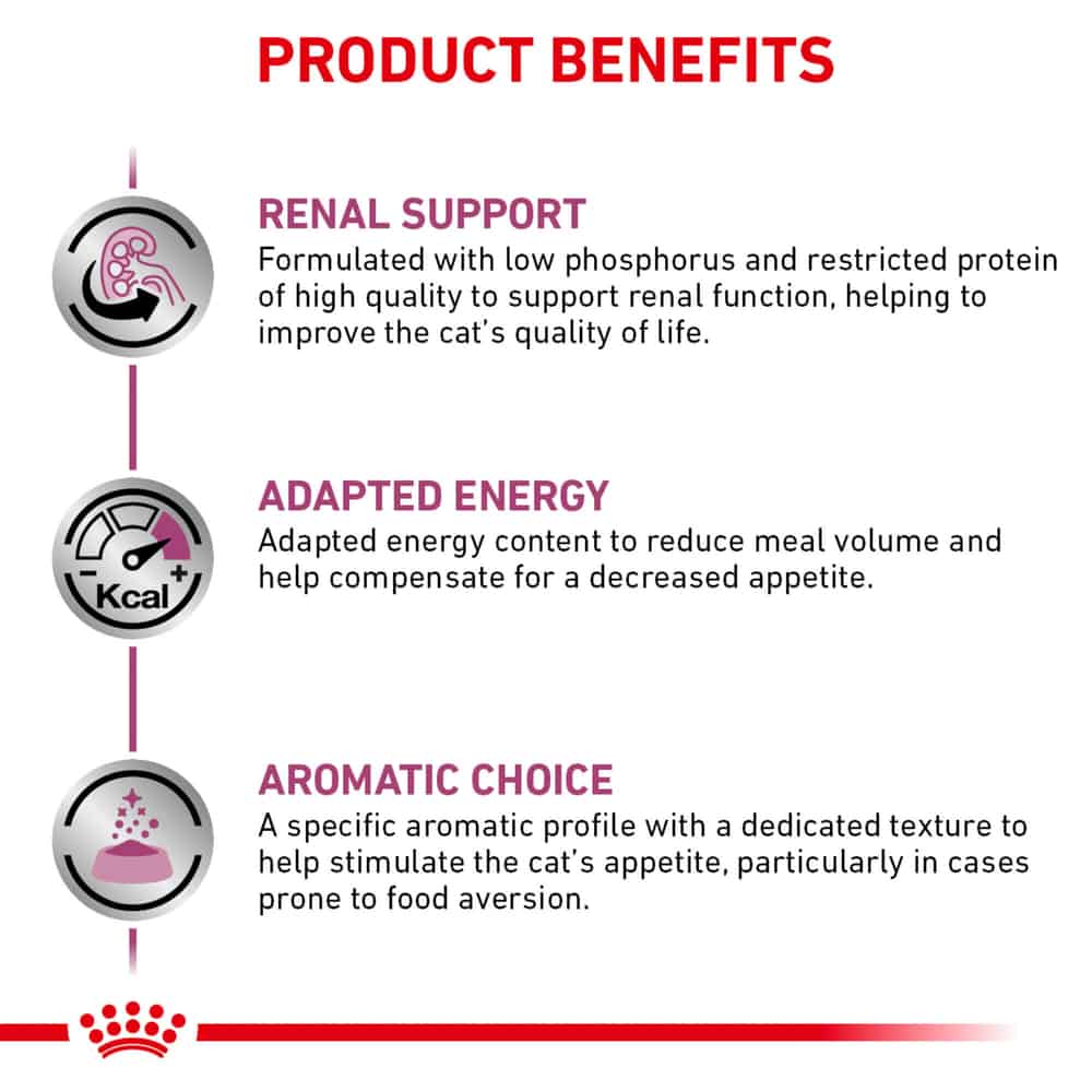 HYDRATION BOOST: Hydration is critical for your cat's renal health. Pairing Royal Canin Veterinary Diet Feline Renal Support Dry Cat Food with Royal Canin Veterinary Diet Feline Renal Support Wet Cat Food is a great way to increase your cat's daily water intake. If your cat needs a hydration boost, wet food can be a flavorful and hydrating addition to their diet.