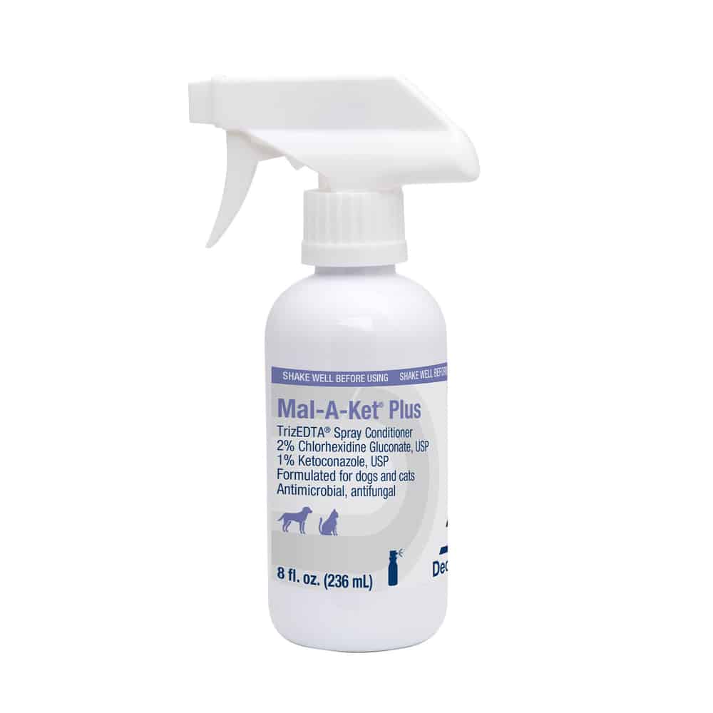 Mal-A-Ket Plus TrizEDTA Spray Conditioner is an easy-to-use spray which is indicated for coat and skin conditions where the following properties would be beneficial to the patient: antifungal and antibacterial. It supports healthy skin for animals with conditions that are responsive to ketoconazole and/or chlorhexidine.