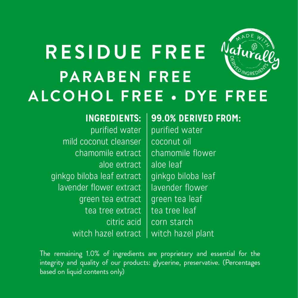 - Mild formula is residue, paraben, alcohol and dye free
