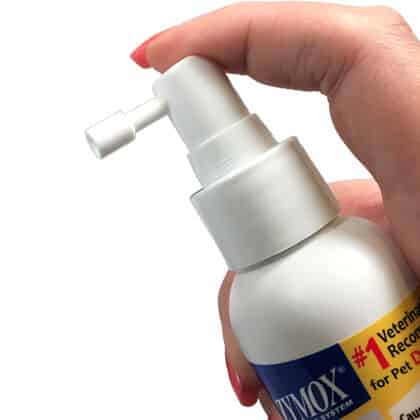 Oratene Breath Freshener is a brushless oral care product that is safe to use for dogs and cats of all ages. The rinseless formulation inhibits harmful bacteria and removes plaque biofilm as well as cleans and refreshes without burning. Oratene Breath Freshener promotes healing of the mouth. It comes in a 4 oz. bottle with a mister that delivers a fine, focused spray.