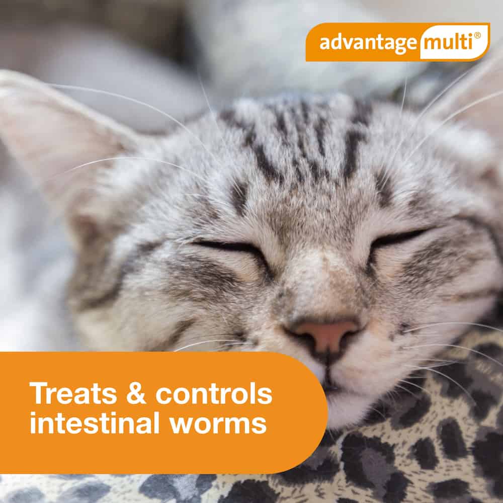 - Advantage Multi for Cats is also used in cats for the treatment and control of flea infestation, roundworms, hookworms, and ear mites.