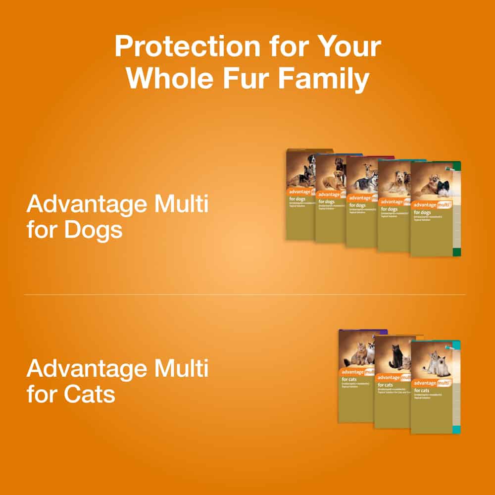 NOTE: Advantage Multi does not protect against ticks. For additional 8 months of protection against fleas and ticks in dogs and cats, use the Seresto Collar.