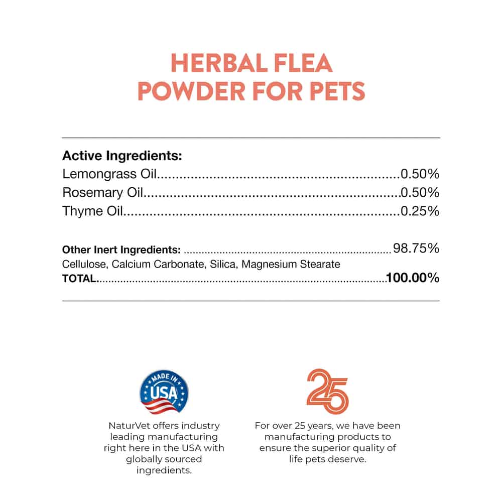 NaturVet Herbal Flea Powder Plus Essential Oils for Dogs & Cats Ingredients: