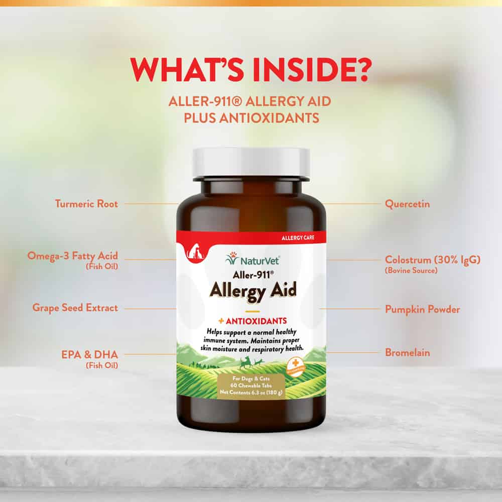 NaturVet Aller-911 Skin & Coat Allergy Aid Formula Plus Antioxidants Supplement for Dogs and Cats Ingredients: