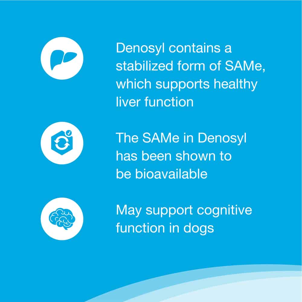 - Denosyl contains a stabilized form of SAMe, which supports healthy liver function