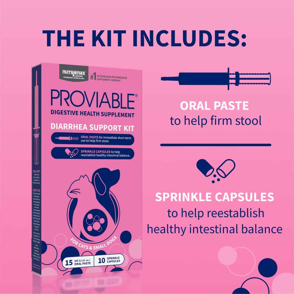 Nutramax Proviable Probiotics for Dogs and Cats Diarrhea Support Kit Digestive Health Supplement with Multiple Strains of Bacteria Plus Prebiotics Kaolin and Pectin