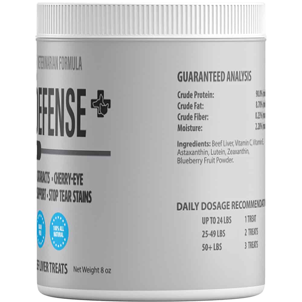 Pet Eyez™️Vitamin Treats are all-natural highly functional freeze-dried treats that eliminate the buildup of tear stains for both dogs and cats in 30 days or less, guaranteed*. Helps with Dry Eyes, Irritated Eyes, Tear Stains, Glaucoma, Cataracts, Cherry-Eye and so much more.