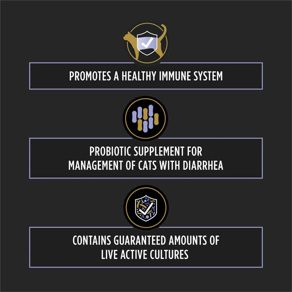 Purina FortiFlora contains active live cultures and a special strain of probiotics to help promote intestinal health and balance in dogs and cats. FortiFlora has been shown to be safe for use, and has excellent palatability. FortiFlora is great for any pet to help promote happy, healthy tummies. It also may help nutritionally manage pets with diarrhea due to: