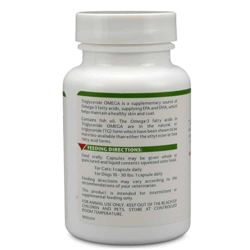 Triglyceride Omega for dogs and cats supplies EPA and DHA omega-3 fatty acids, which helps maintain a healthy skin and coat. Omega-3 fatty acids are also used to support kidney and heart function and may also support joint health.
