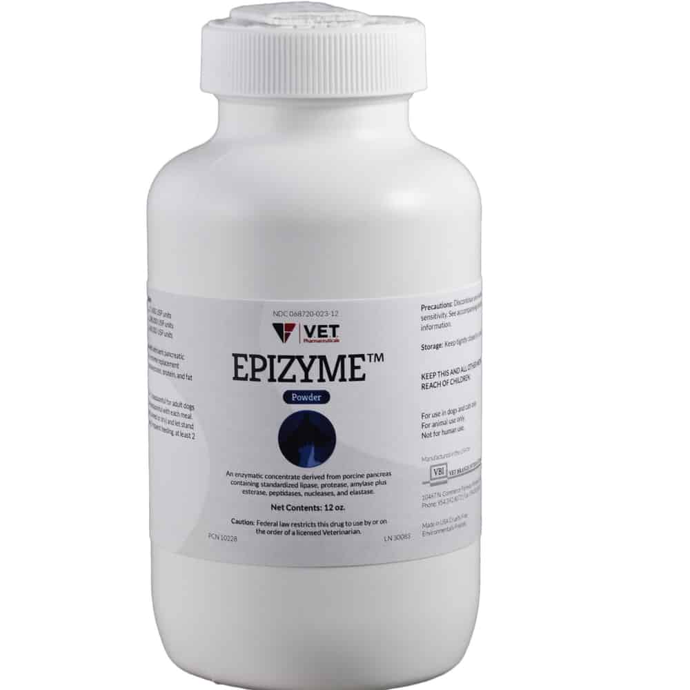 Epizyme is a prescription medication FDA approved for veterinary use in dogs and cats. Epizyme is available as a powder. Each 1 teaspoonful of powder (2.8 Gm) contains Lipase (71,400 USP Units), Protease (388,000 USP Units) and Amylase (460,000 USP Units). The usual dose of Epizyme powder in dogs is 3/4-1 teaspoonful mixed with each meal. After mixing, allow the mixture to stand for 15-20 minutes before feeding it to your pet. For cats, the usual dose of Epizyme powder is 1/4-3/4 teaspoonful of the powder mixed with each meal. After mixing, allow the mixture to stand for 15-20 minutes before feeding it to your pet.