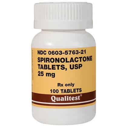 Spironolactone is a prescription medication that is not FDA approved for use in animals; however, it is a commonly accepted practice for veterinarians to use spironolactone in dogs and cats. Spironolactone is available as 25mg scored tablets. The usual dose in dogs and cats is 0.5-1mg per pound every 12 hours. Give spironolactone with food to lessen stomach upset.