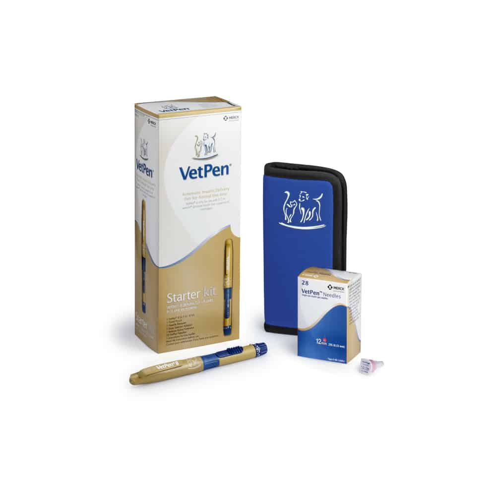 VetPen must be used with specially designed 3 mL cartridges containing 2.7 mL of Vetsulin, a 40 IU/mL insulin. VetPen can only be used with VetPen Needles(12mm x 29G). To avoid damaging VetPen and dosing errors, cartridges containing other insulins should not be used with VetPen. The VETSULIN® VETPEN® Starter Kit includes a package of 28 VetPen Needles. When needed, a 100 ct refill package is available. While Vetsulin Insulin is not a cure for diabetes, it helps alleviate diabetes symptoms in your pet. VetPen must be administered subcutaneously.
