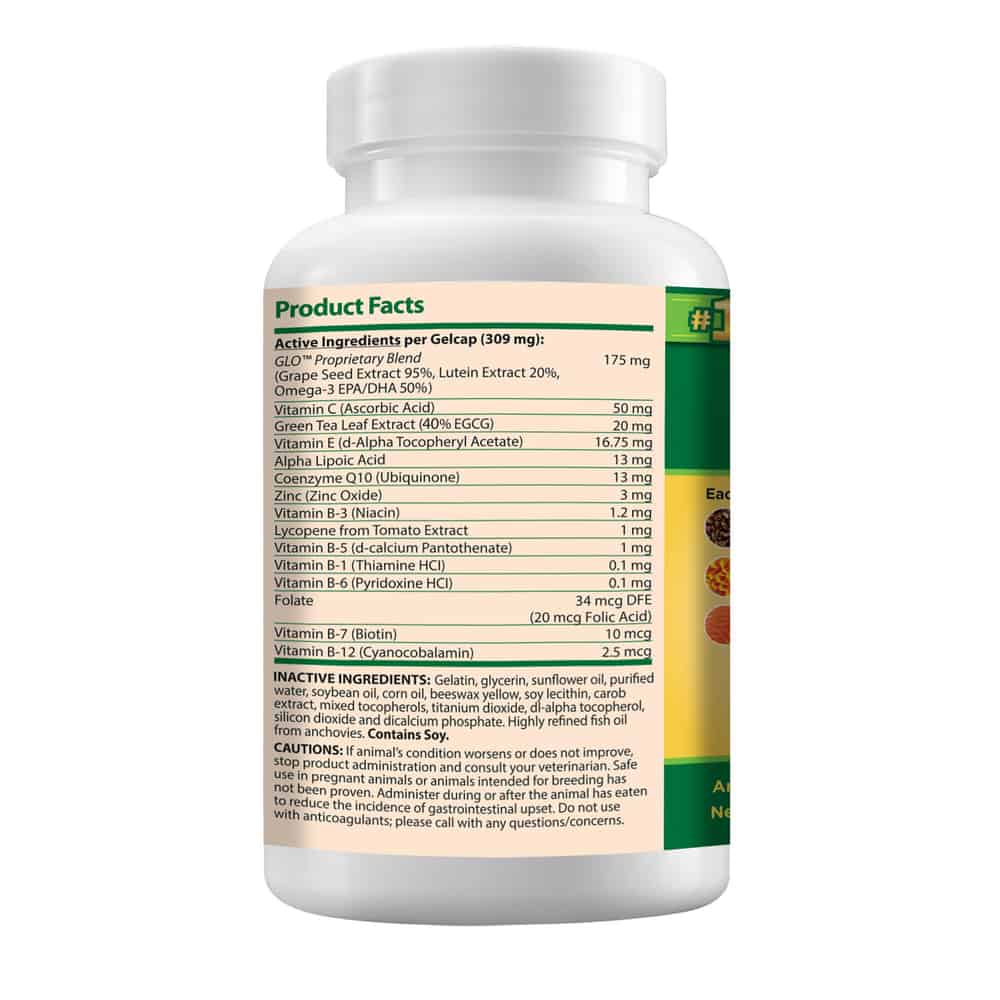 | GLO Proprietary Blend (Grape Seed Extract, Lutein Extract, Omega-3 EPA/DHA) | 175 mg |