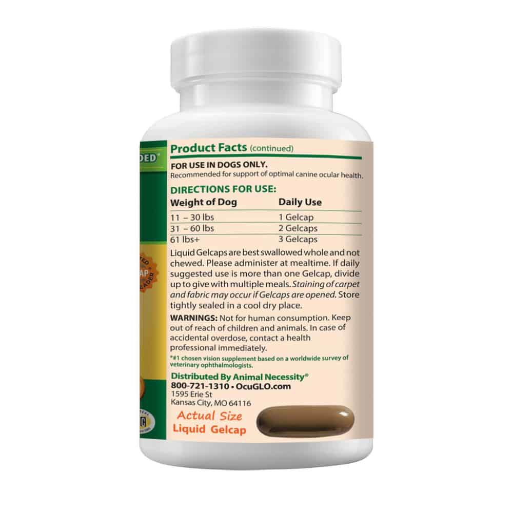 Ocu-GLO Vision Supplement is for use in dogs only. Safe use in pregnant pets or pets intended for breeding has not been proven. Keep out of reach of children and pets. In case of accidental overdose, contact a health professional immediately.