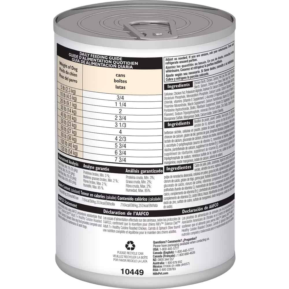 Hill's Science Diet Adult 7+ Healthy Cuisine Roasted Chicken, Carrots & Spinach Stew Wet Dog Food Directions: