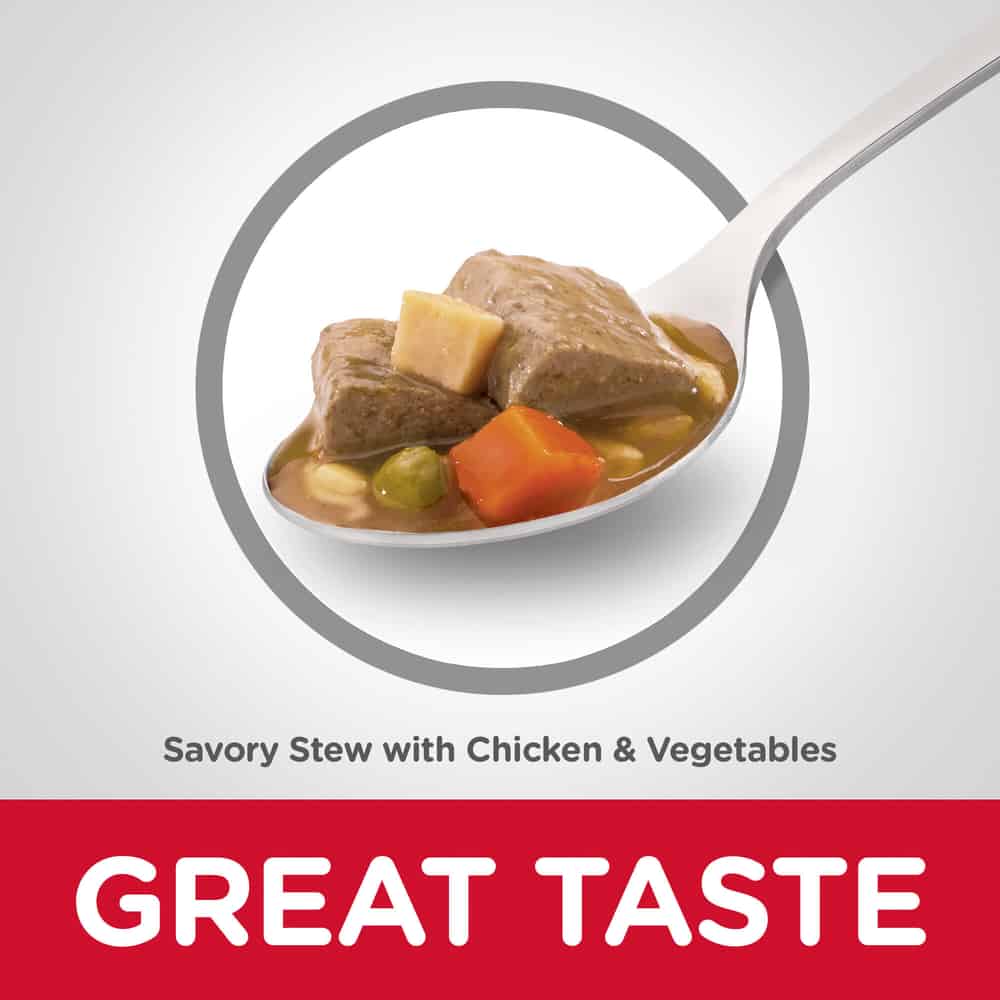 How does Hill's Science Diet Adult 7+ Savory Stew with Chicken & Vegetables Wet Dog Food work?