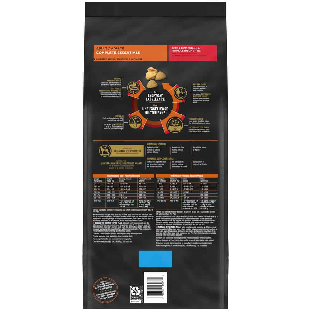Purina Pro Plan Adult Complete Essentials Shredded Blend Beef & Rice Formula Dry Dog Food Directions: