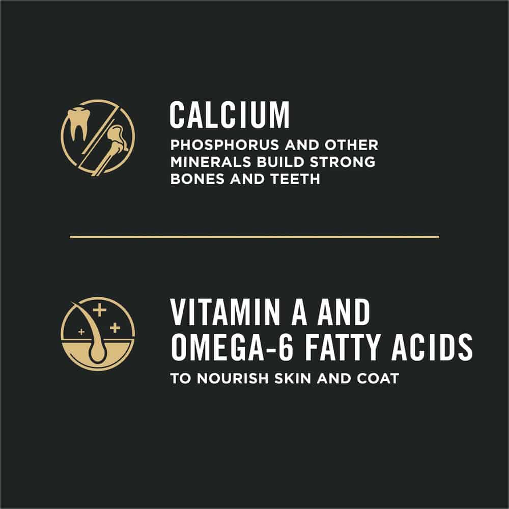 - Vitamin A and omega-6 fatty acids to nourish skin and coat