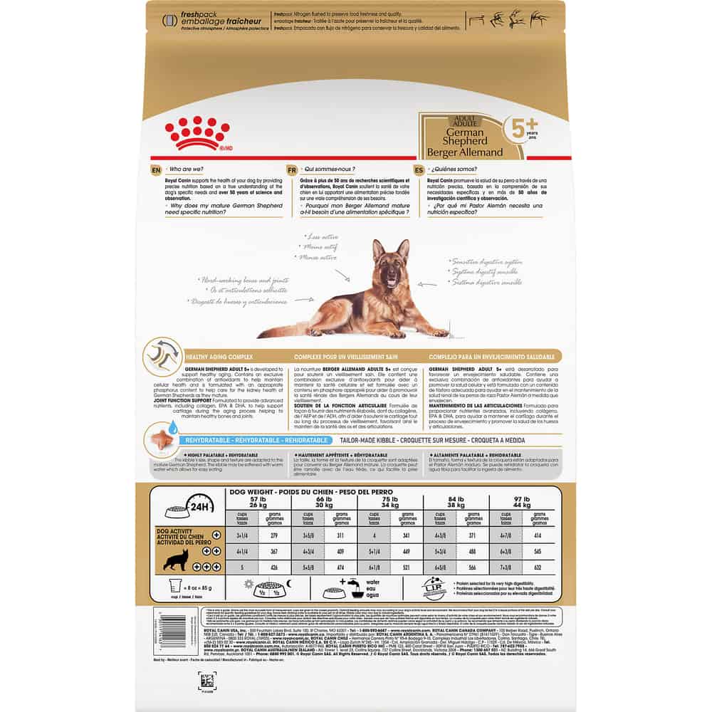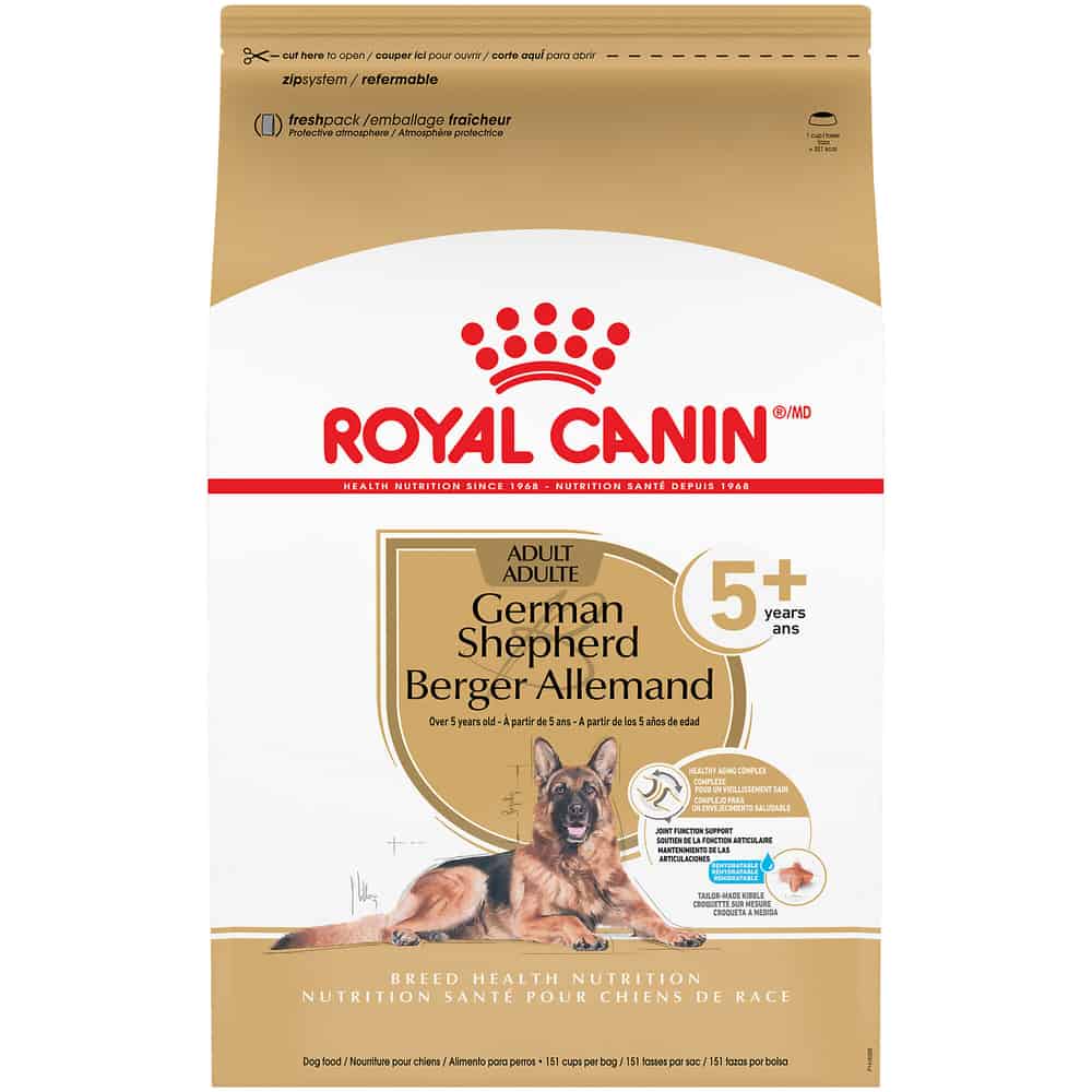 • FORMULATED FOR PUREBRED GERMAN SHEPHERDS: Royal Canin German Shepherd Adult 5+ Dry Dog Food is complete and balanced nutrition designed to meet the specific needs of senior purebred German Shepherds 5 years and older