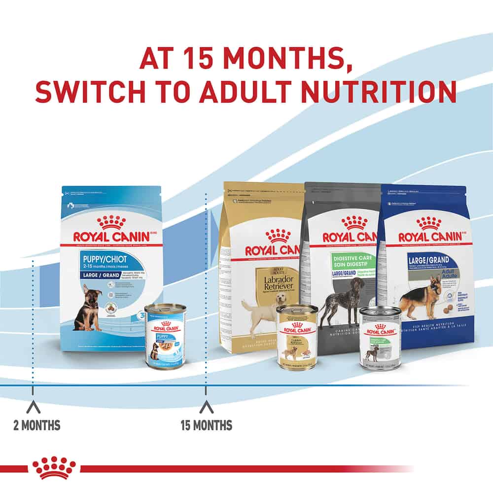 - FORMULATED FOR LARGE BREED PUPPIES: Royal Canin Large Breed Puppy Wet Food is formulated for puppies from 2 to 15 months old with an expected adult weight from 56-100 lb