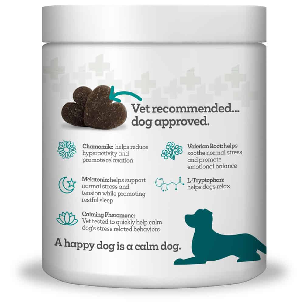 - Present the chew to your dog prior to feeding it. Let your pup sniff the pheromone on the outside allowing the pheromones to be received into the olfactory and it will immediately start to calm your dog. The proprietary calming blend on the inside starts to work after your dog ingests the tasty chew providing longer-lasting calming benefits.
