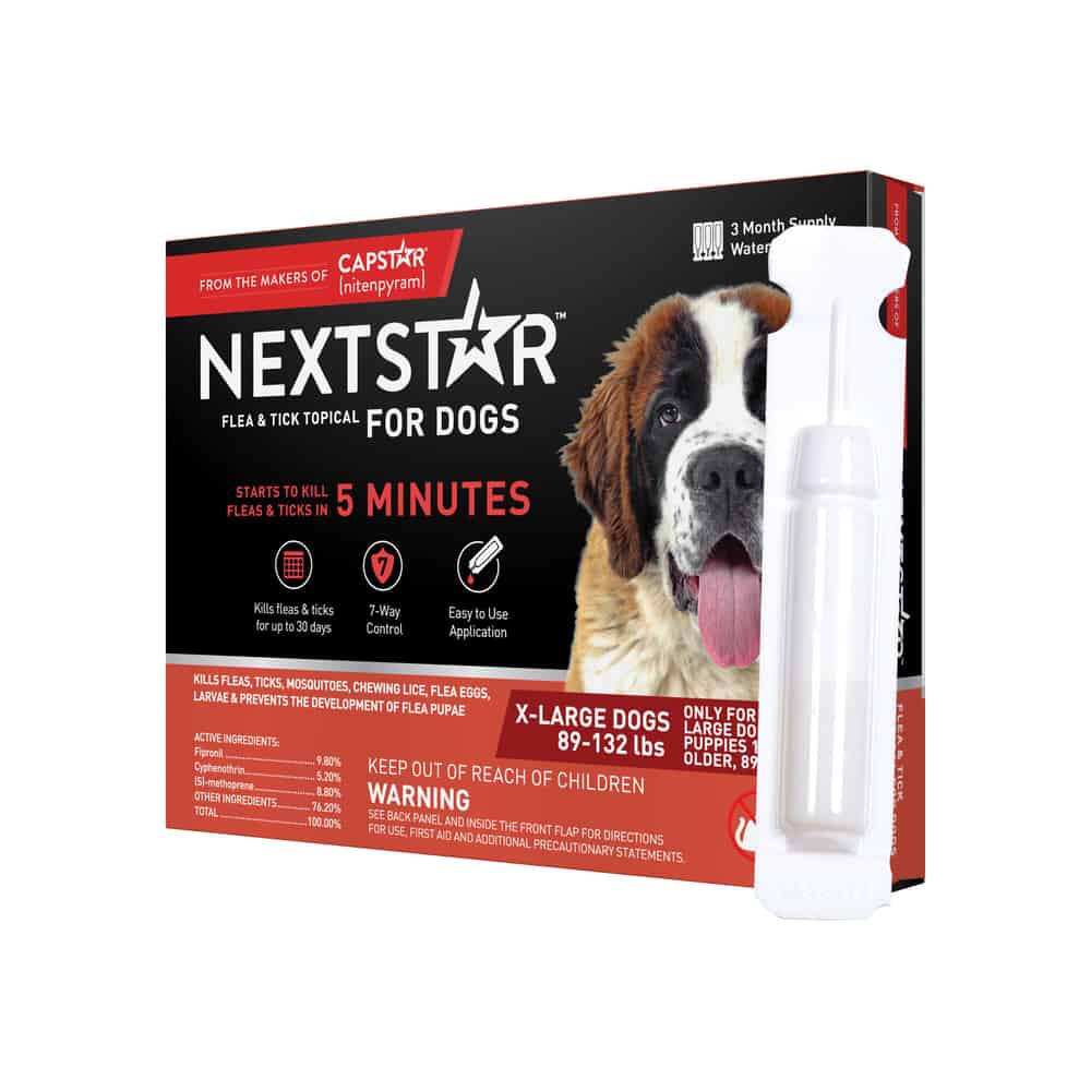 - NEXTSTAR Flea & Tick Topical provides effective dog flea and tick control for 30 days with just one application. This fast-acting waterproof topical kills fleas, ticks, mosquitoes, chewing lice, flea eggs, flea larvae, and prevents the development of flea pupae
