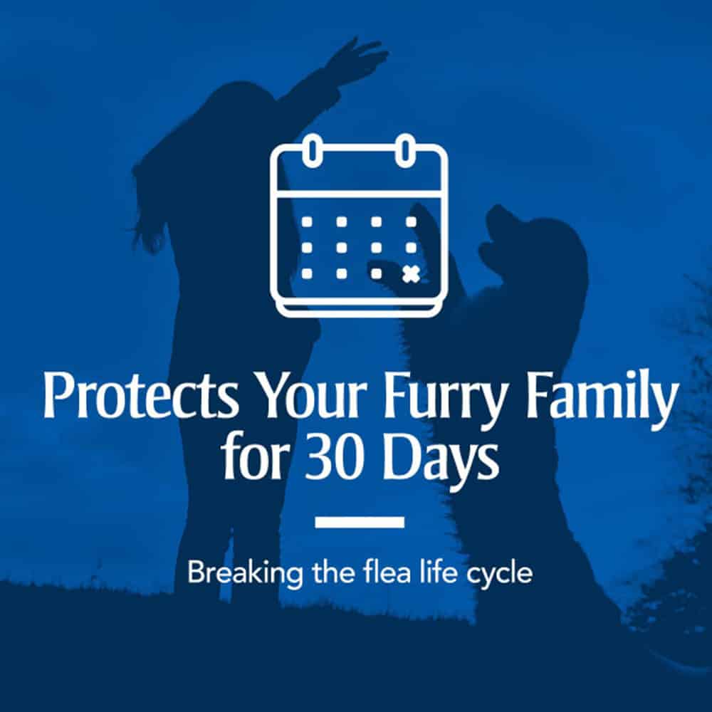 - Protects your furry family for 30 days by breaking the flea life cycle