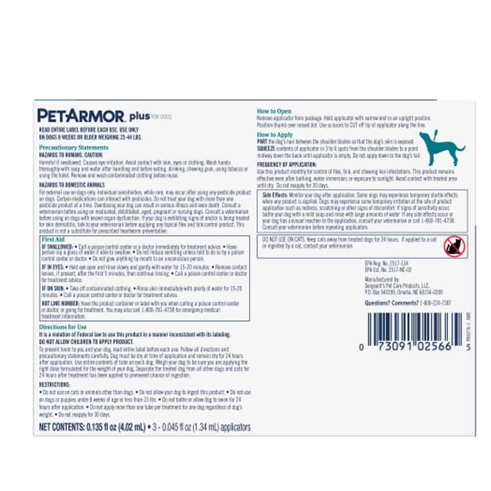It is important to know your pet’s exact weight to select the correct dose. Do not attempt to split doses between pets. PetArmor Plus for Dogs should not be used on cats, and PetArmor Plus for Cats should not be used on dogs.