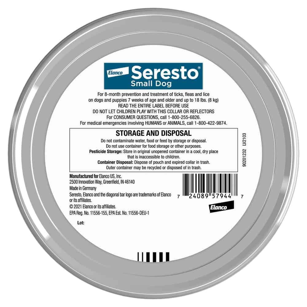 Seresto Small Dog collars make your dog’s comfort a priority by killing fleas and ticks on contact, so pests don’t have to bite your dog to die. Existing fleas die within 24 hours after initial application of the collar. After 24 hours, any new fleas on the dog are killed within 2 hours with protection against further flea infestation lasting 8 months. The prevention of infestations with new ticks starts at 48 hours after application of the collar. 48 hours after application, any new ticks are repelled and/or killed in as quickly as 6 hours. Seresto Small Dog collars protect against common pests like deer ticks, American dog ticks, brown dog ticks, and Lone Star ticks; they’re also effective against chewing lice. Fleas and ticks not only cause discomfort; fleas can transmit bartonellosis or tapeworm. Ticks can transmit Borrelia burgdorferi which causes Lyme Disease. Check the product label for information on potential side effects.