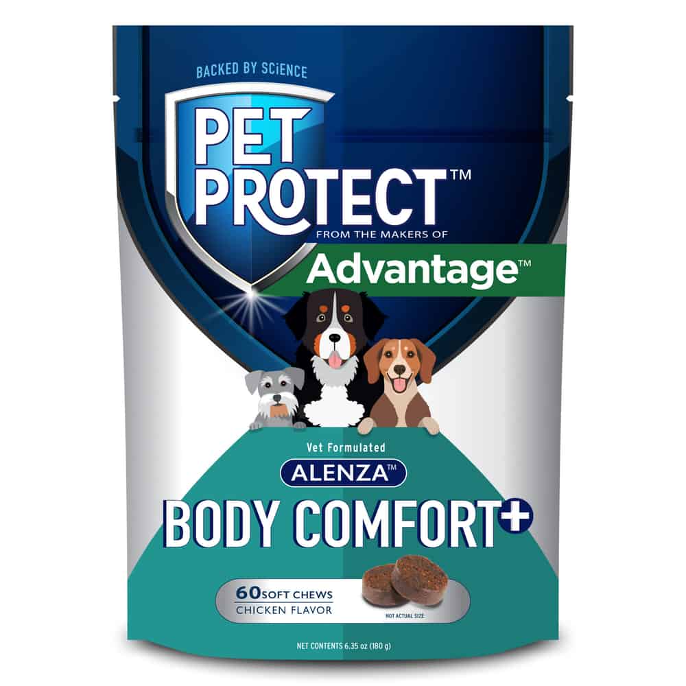 - Pet Protect Body Comfort+ supplement is a chicken-flavored soft chew that provides benefits as quickly as within 2-4 weeks