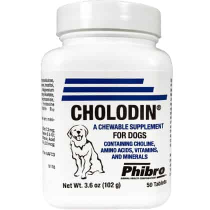 Cholodin is a chewable dietary supplement that helps remedy various conditions in senior dogs. It has been recommended by veterinarians for age-related problems, including fatigue, poor coat, constipation, inappropriate urination, poor appetite, and poor mental performance.