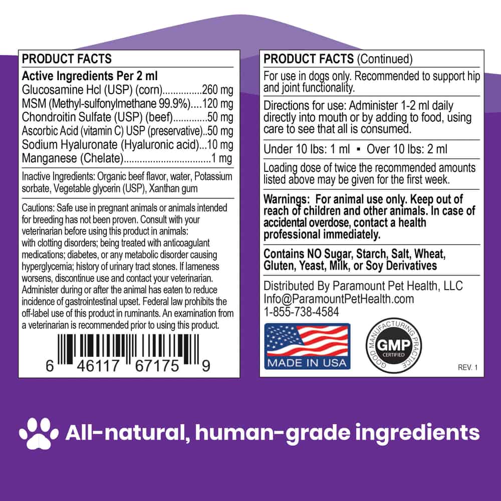 Paramount Pet Health Liquid Glucosamine for Small Dogs Ingredients: