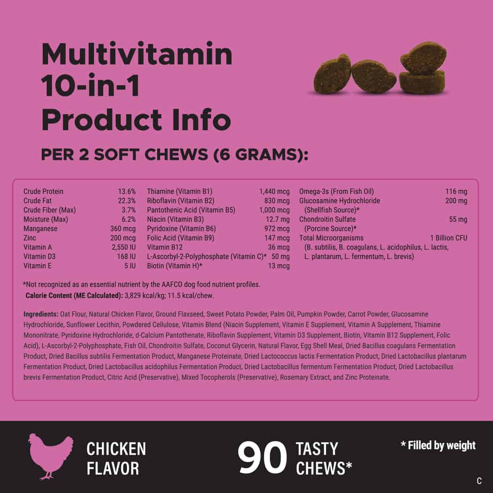 Pet Honesty Multivitamin 10-in-1 Chicken Flavored Soft Chews Daily Vitamin Supplement for Dogs Ingredients: