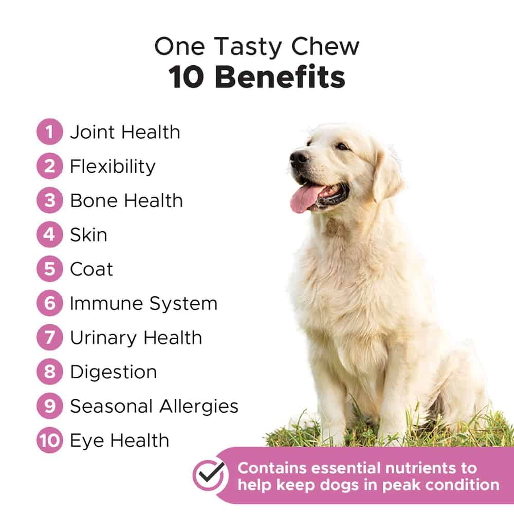 - Each beef-flavored chew is easy to give because dogs love the taste