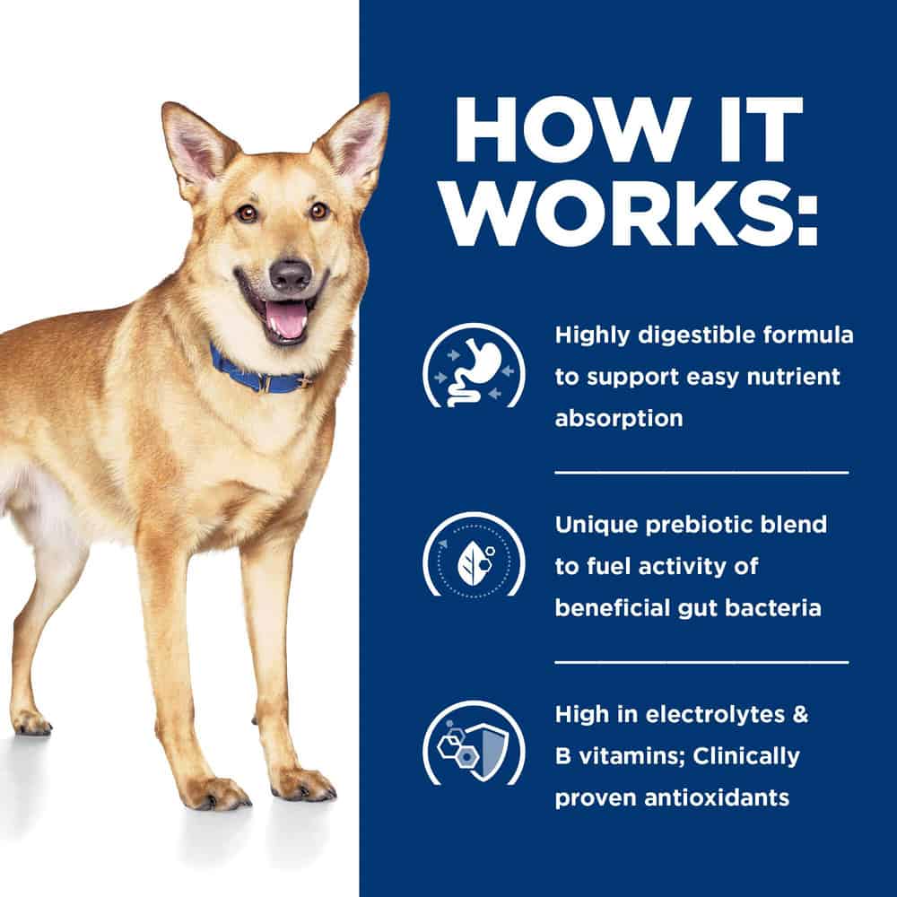 How does Hill's Prescription Diet i/d Digestive Care Chicken Flavor Dry Dog Food work?