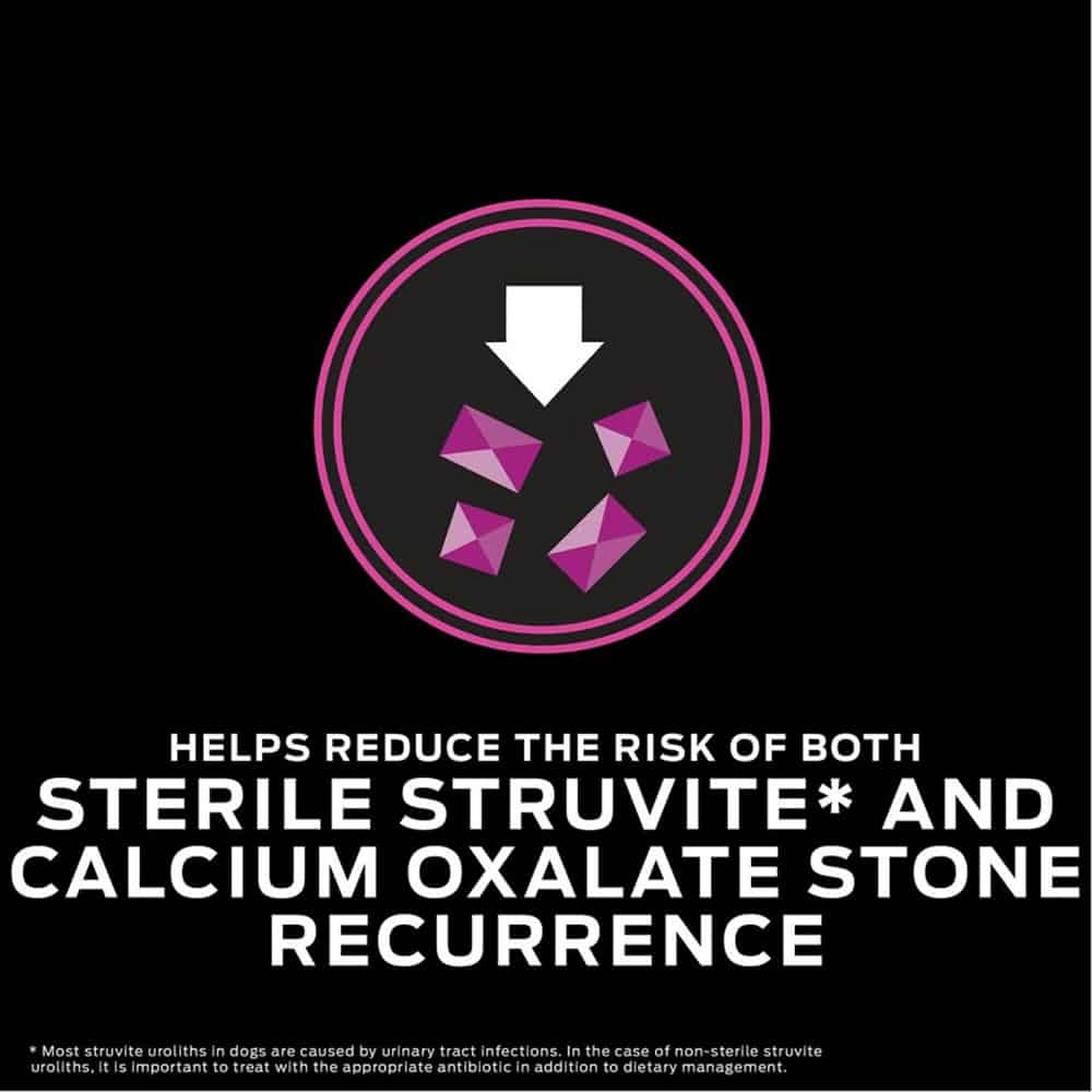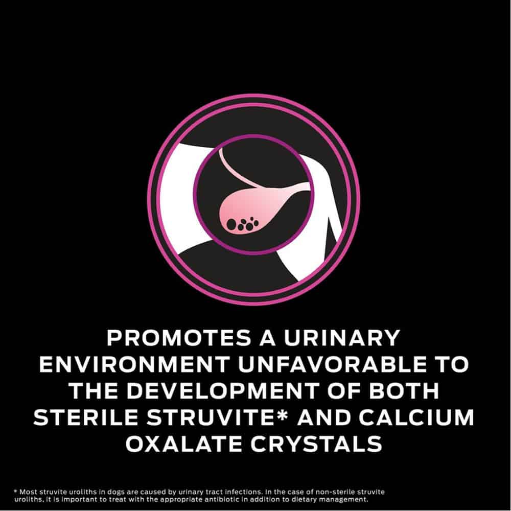Purina Pro Plan Veterinary Diets UR Urinary Ox/St Canine Formulas promotes a urinary environment unfavorable to the development of both sterile struvite and calcium oxalate crystals.