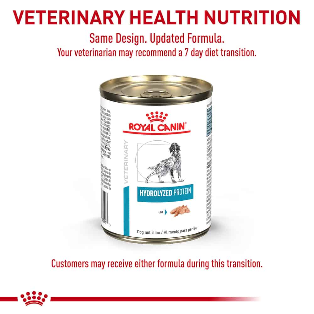 Are you concerned about your dog's skin and coat condition or their digestive health? Food sensitivities can make your dog miserable. But with the help of your veterinarian and Royal Canin, there's not just hope, there can be a visible difference. Whether a veterinarian has determined through an elimination diet trial that your dog has food sensitivities or that they require long-term support for skin and GI issues, your vet recommended Royal Canin Hydrolyzed Protein Dog Food Wet formula for a reason. This highly palatable diet is designed for adult dogs.This veterinary exclusive formula requires a prescription. Consult your veterinarian for more information about this product for your pet.