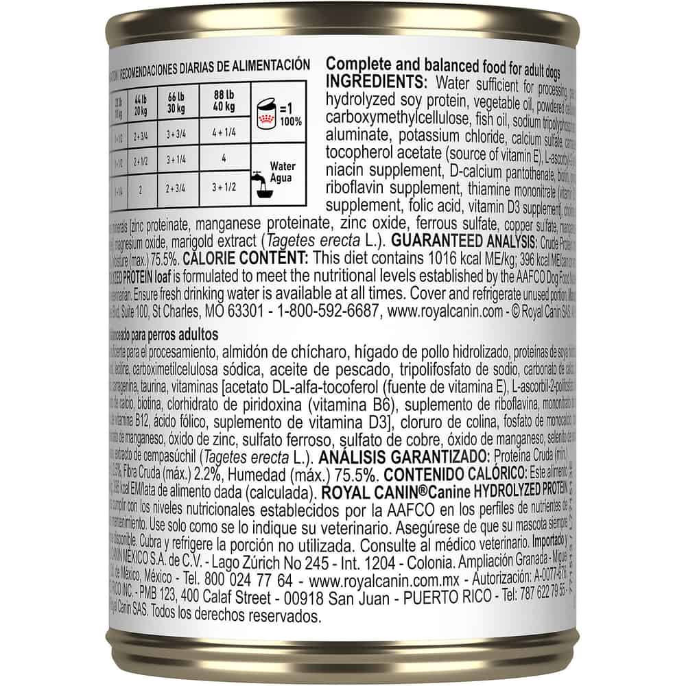 Royal Canin Veterinary Diet Canine Hydrolyzed Protein Loaf Wet Dog Food Dosage: