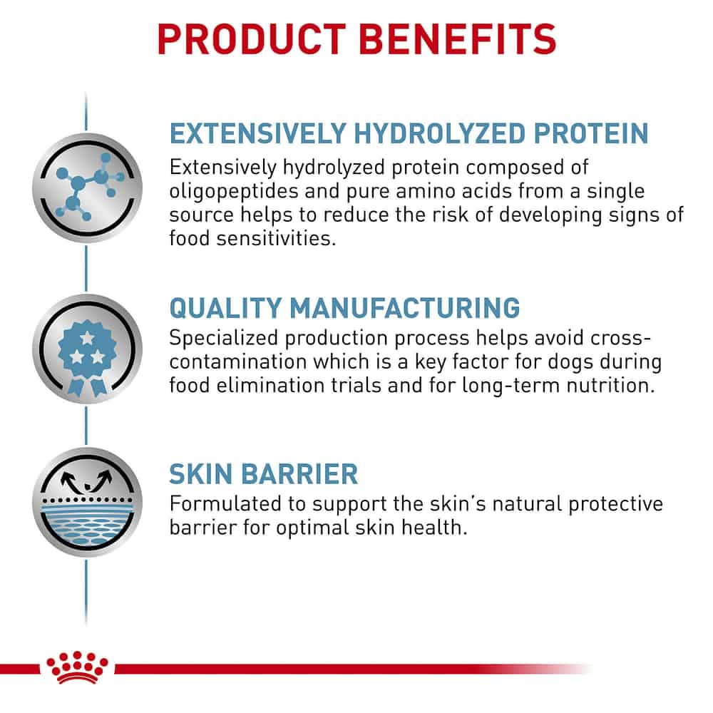 MINIMIZE TRIGGERS: Exclusively feed Royal Canin Veterinary Diet Canine Ultamino Dog Food and avoid table scraps or human food, as this can potentially trigger their allergies. Consult your veterinarian to determine which treats are suitable for your dog with sensitivities to ensure they don't undermine the benefits of their veterinary diet.