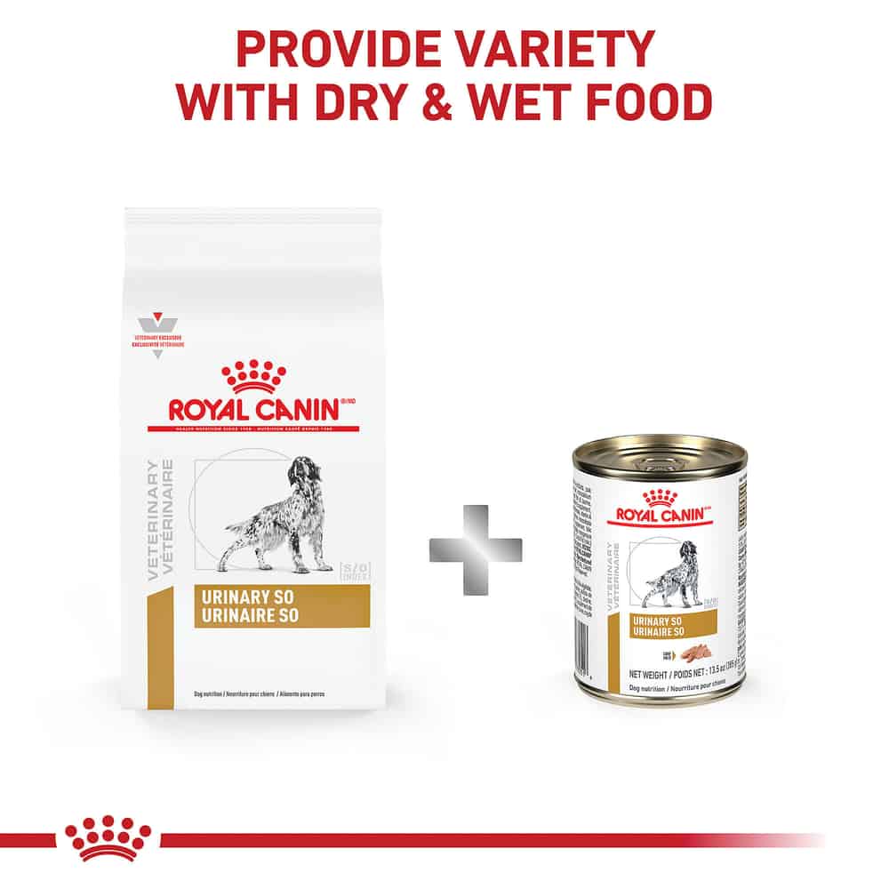 HYDRATION BOOST: Hydration is critical for your dog's urinary health. Pairing Royal Canin Veterinary Diet Canine Canine Urinary SO Dry Dog Food with Royal Canin Veterinary Diet Canine Canine Urinary SO Wet Dog Food is a great way to increase your dog's daily water intake. If your dog needs a hydration boost, wet food can be a flavorful and hydrating addition to its diet.