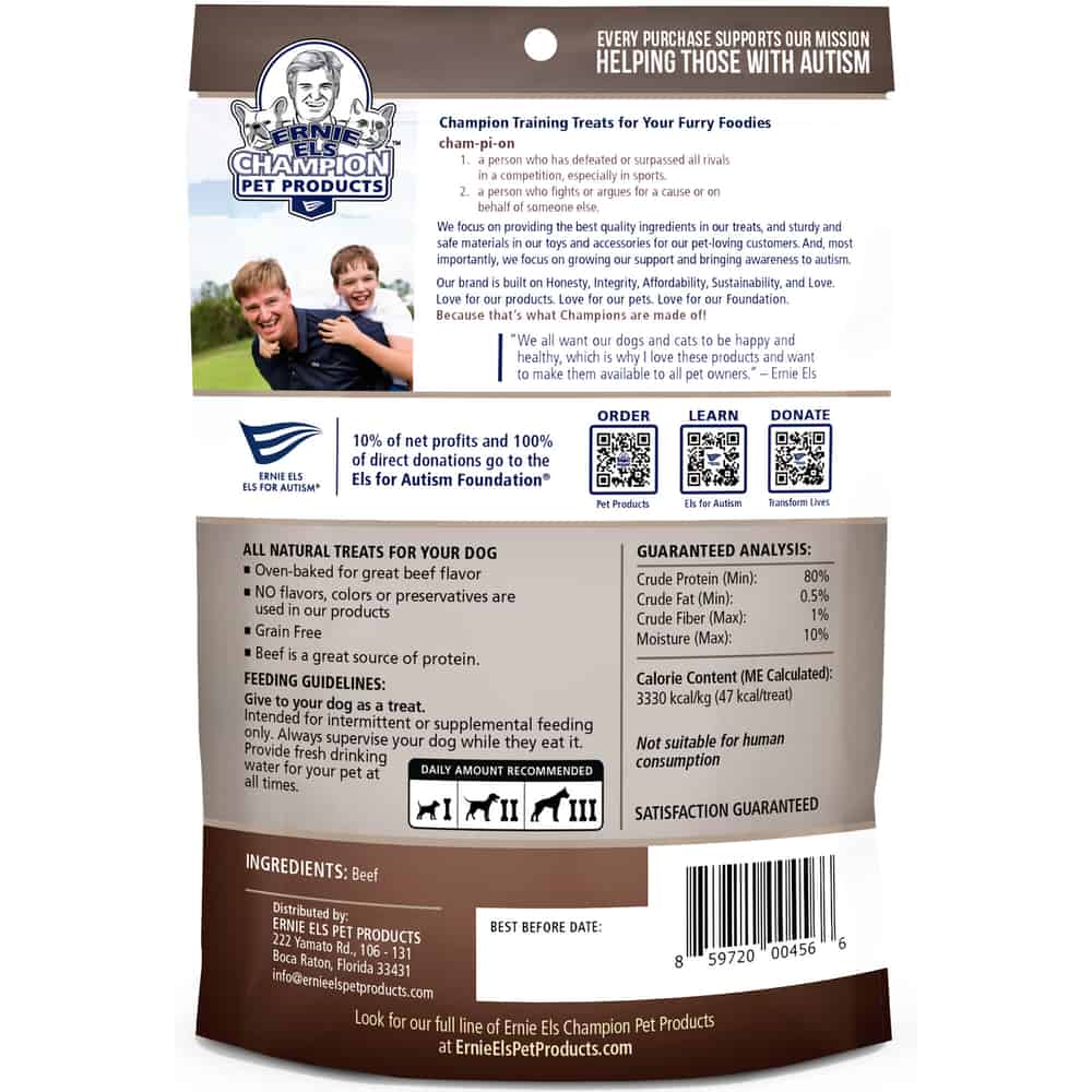 Keep it simple and savory with Ernie Els single-ingredient jerky treats made with USA ranch-raised beef.