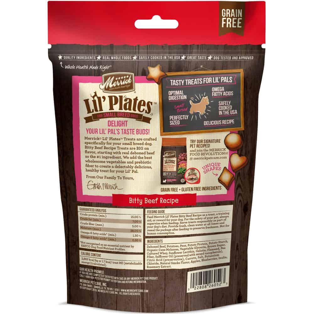 - Merrick Lil' Plates Bitty Beef Recipe Grain Free Small Breed Dog Treats