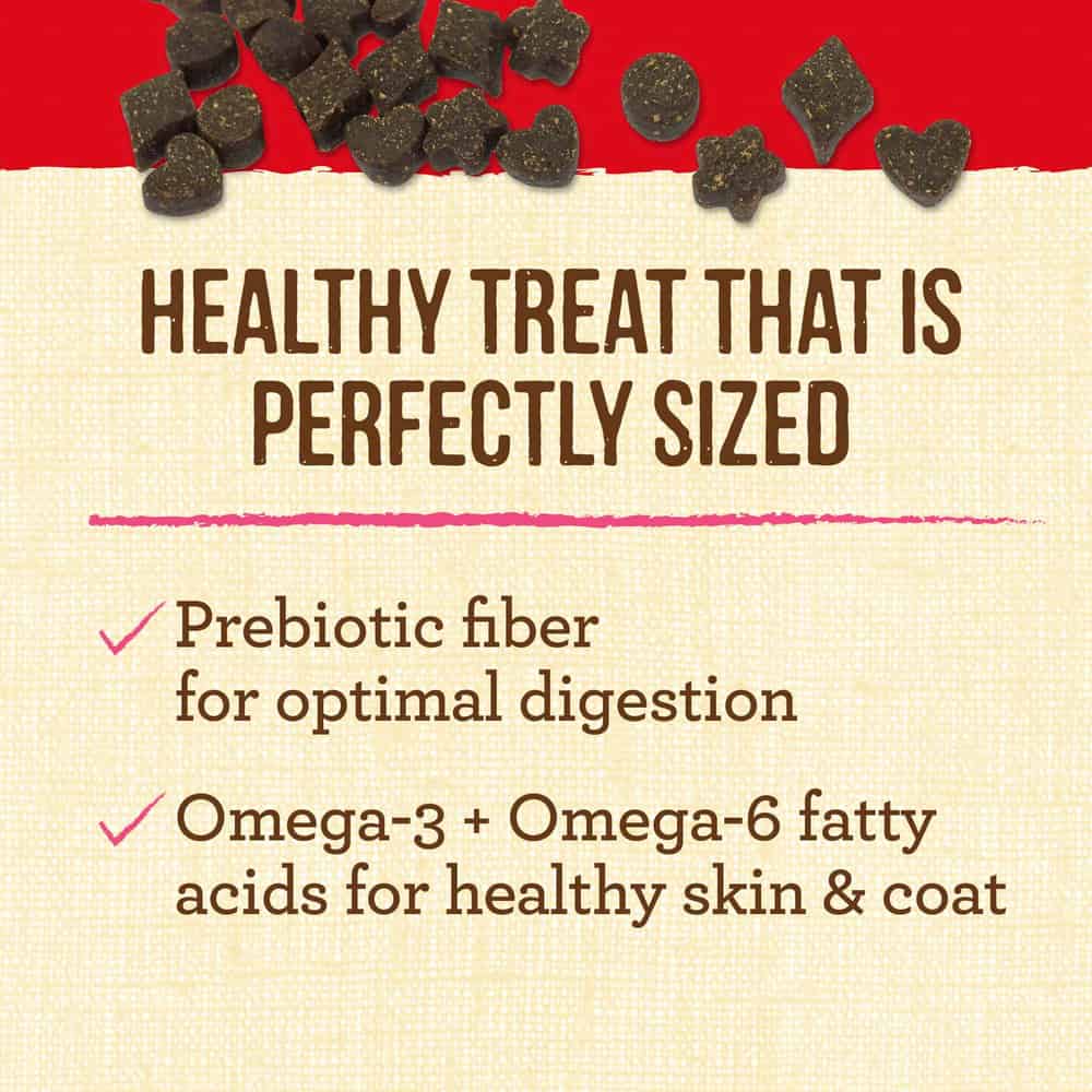 - Healthy, natural dog treats in a variety of fun shapes that are perfectly sized for small breed dogs Grain free dog treats crafted with prebiotic fiber for optimal digestion and Omega fatty acids for healthy skin and coat