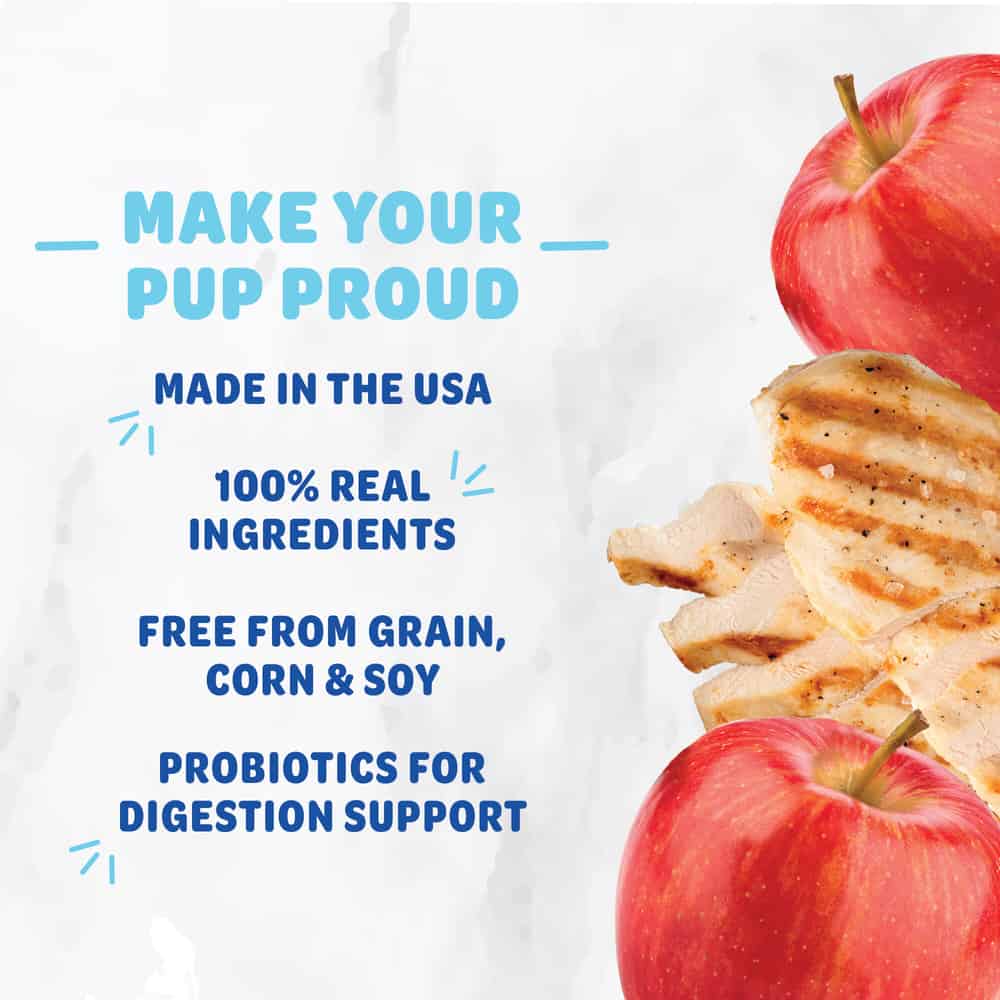 | Sunflower meal*, chickpea, tapioca, coconut glycerin, apple pomace*, chicken, inulin, apple cider vinegar, citric acid (a preservative), natural flavor, cinnamon, dried bacillus coagulans fermentation product |